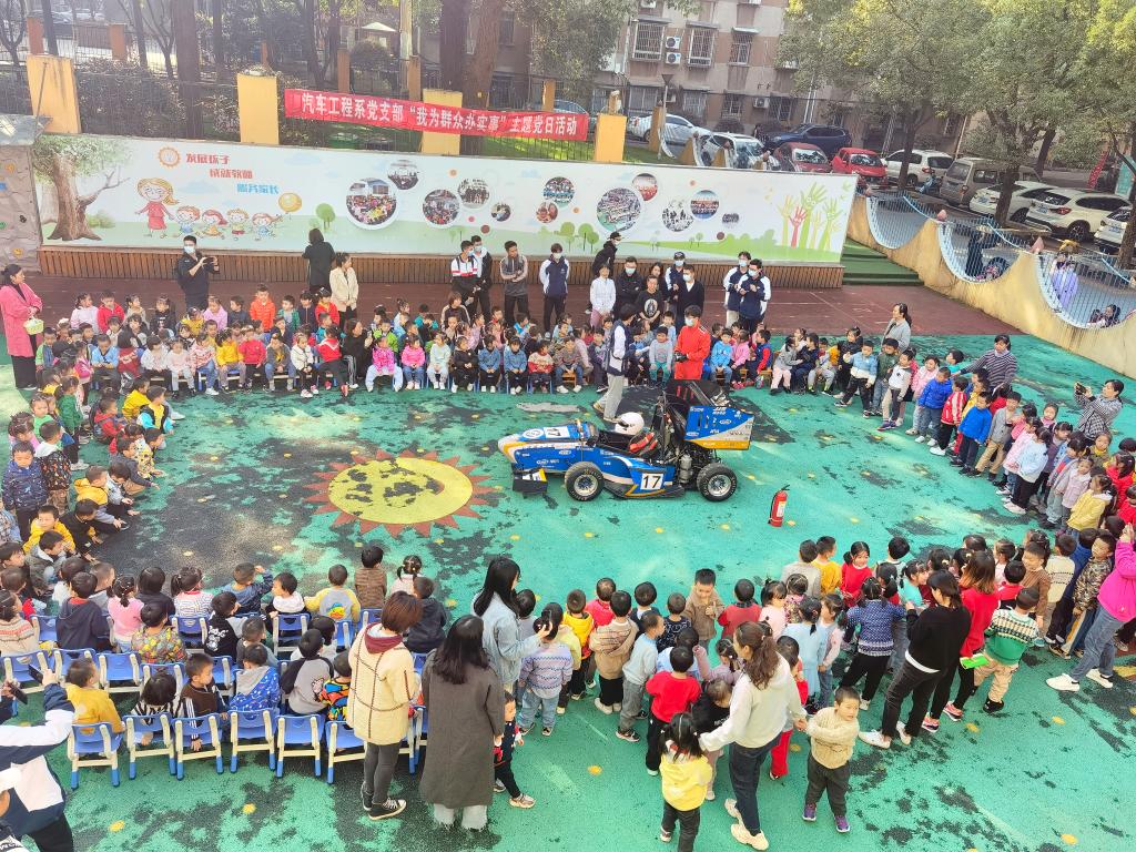 11月19日上午,幼儿园联合伟德betvlctor1946源于英国汽机学院的方程式赛车队开展“汽车知识启蒙课”的“我为幼儿办实事”主题党日活动。将方程式赛车开进幼儿园,让幼儿园的小朋友近距离接触赛车,传播汽车文化,从小播下科技的种子,启迪幼儿智慧。
