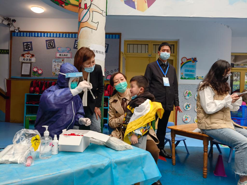 子弟小学和幼儿园根据天心区教育局统一安排部署,分别在本校内进行核酸检测。为最大效率协助完成核酸检测任务,子幼党支部组织党员教师开展“党员助力核酸检测,师生共创平安校园”志愿服务活动。志愿者们提前来到检测地点,进行详尽的分工布置和安全说明。在检测过程中,他们统一佩戴口罩,穿梭于各个检测现场之间,维护着核酸检测秩序,协助医生扫码,并提醒前来检测的同学们做好相关防护,出示健康码,安抚害怕的同学,全力配合现场检疫人员的工作。尽管检测现场的工作十分辛苦,但是志愿老师们仍然坚守岗位、各司其职,尽显党员责任担当。