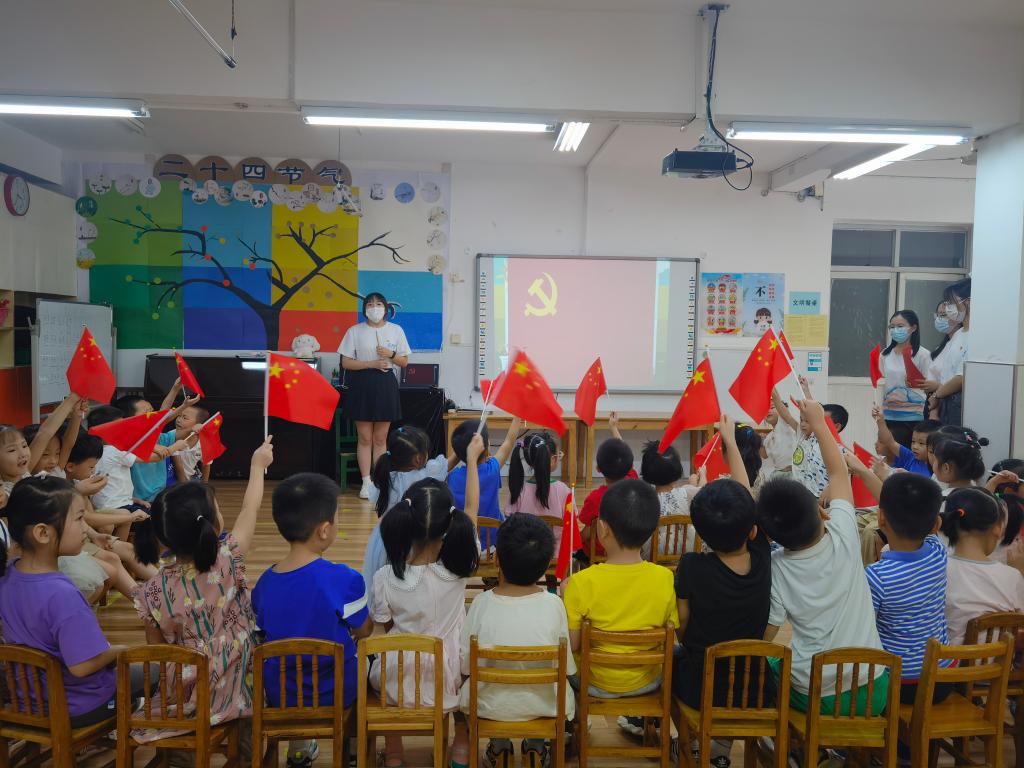 “扬帆奋进新征程,童心献礼二十大”,活动最后,支部全体党员与小朋友们一起喊出响亮口号,表达了对党的敬意和听党话、跟党走的决心。希望通过此次活动,在孩子们心理种下一颗爱国爱党的种子,让红色基因代代相传。(图文/傅敏 审/刘婷)