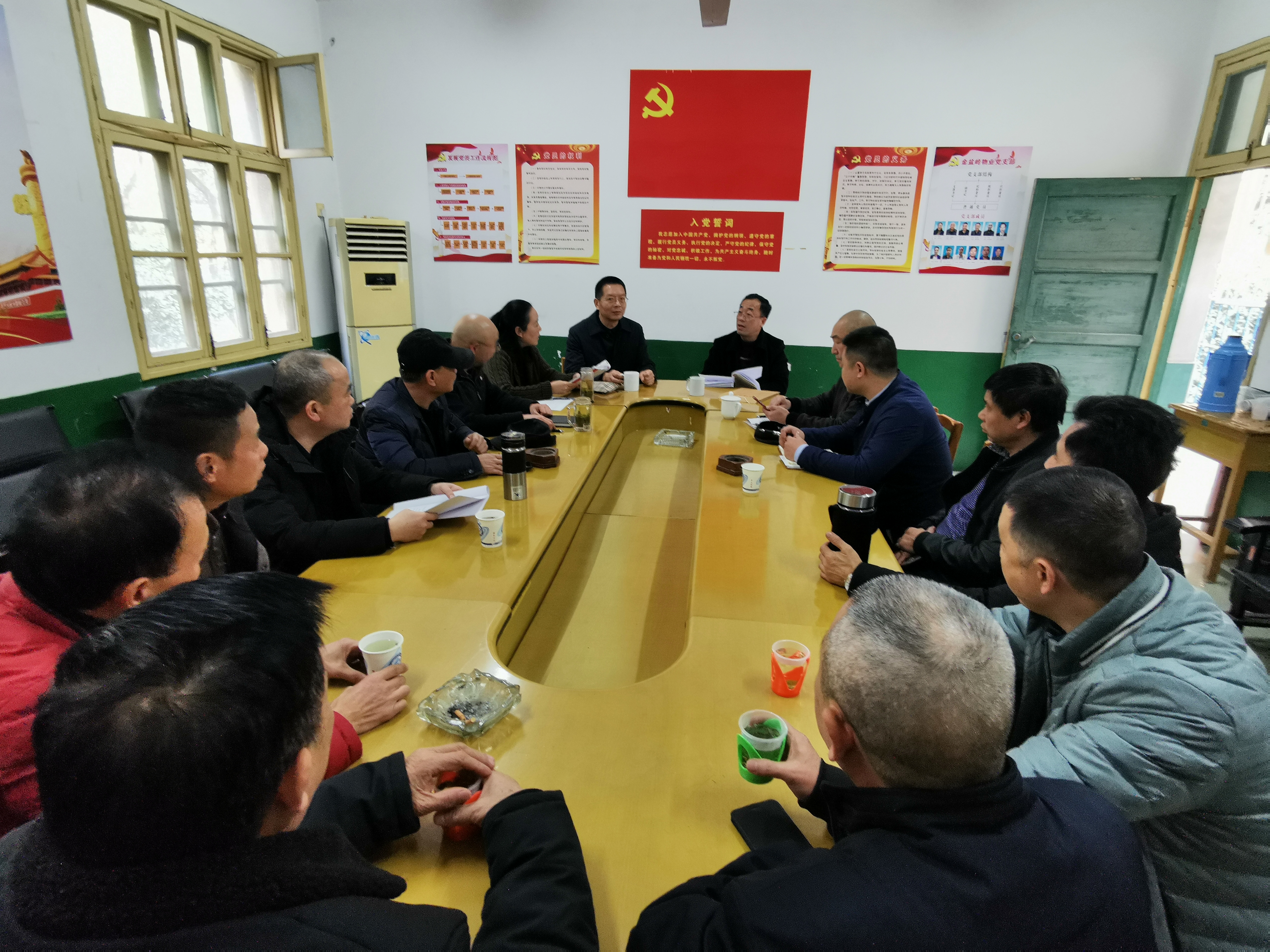 12月25日下午,金盆岭物业党支部召开党员大会,后勤中心党委书记王明彦和副主任张星明参加指导。会议由支部书记蒋翠玲主持。