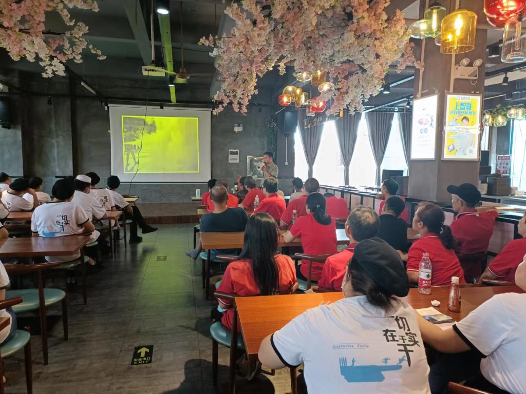 演练实训前,安全员作了《遵守安全生产法,当好第一责任人》的培训,具体讲解了高校食堂消防工作的重要性和消防演练的流程等,为消防演练的顺利完成打下良好基础。