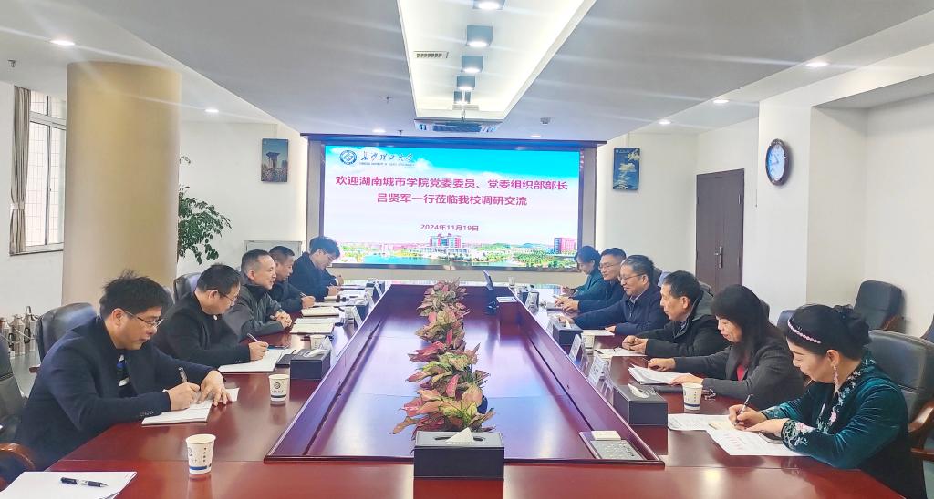 11月19日上午,湖南城市学院党委委员、党委组织部部长吕贤军一行来伟德调研交流。校党委委员、副校长胡永乐,后勤中心党委书记王学成、主任孔蔚湘、副主任邓应军及相关部门负责人参加座谈交流。