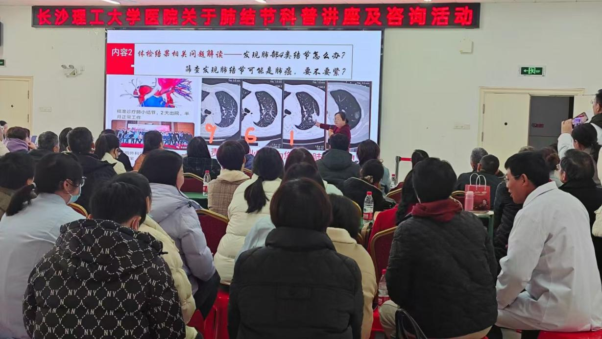 为进一步普及肺部健康知识,1月6日,校医院肺结节科普讲座在云塘校区医院举行。本次讲座由中南湘雅医院肺结节领域权威专家熊曾教授主讲,校医院副院长王楠主持。教职工代表、校医院工作人员共100余人参加讲座。
