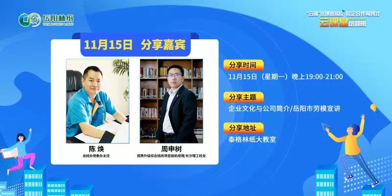 此次“云”实训班于11月15日正式开课。岳阳林纸分公司人力资源部经理闫波涛开班致辞,对参与“云课堂”实训班的学员寄予殷切希望并提出学习要求。总经办党委办主任陈焕详细介绍了岳阳林纸公司的发展变革及文化传承,使同学们深入了解了企业“向文明、德载业、竞天择、新致远"的价值体系与力量源泉。一个成功的企业,必然有一种优秀的文化做支撑,企业文化作为强大的精神力量,激励着一代代岳纸人拼搏前进;,岳阳市劳动模范,提质项目纸机经理周申树对待工作的干劲和拼劲正是无数兢兢业业坚守岗位的岳纸人的缩影。岳阳林纸公司作为央企,坚持党建引领和绿色发展,坚持改革创新,大力推崇爱岗敬业精神,吸引伟德轻化工程、化学工艺与工程、应用化学、环境工程、机械工程等多个专业应届毕业生前来参加空中招聘宣讲会。