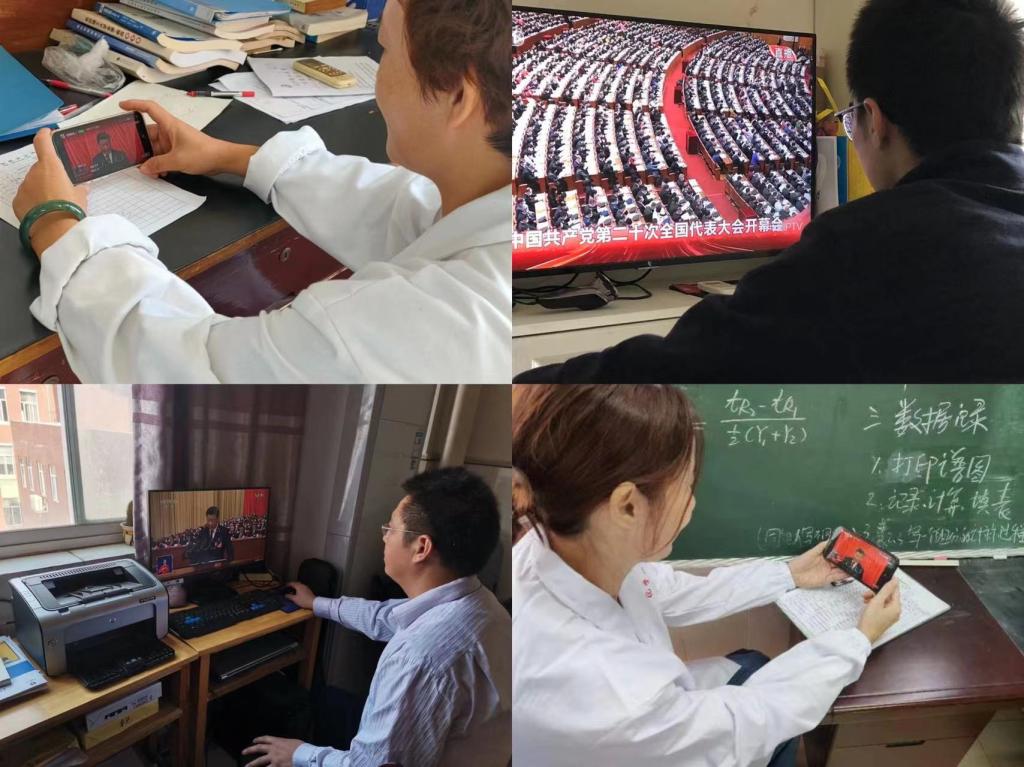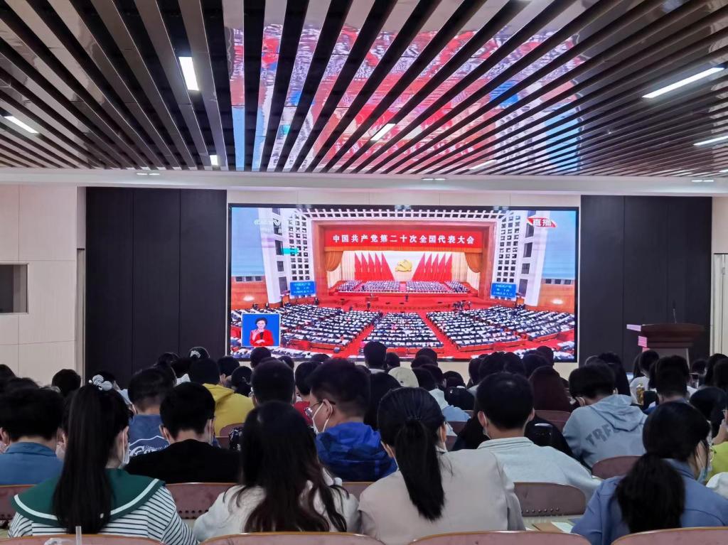 学院制订了以“组织集中学、结合岗位学、独立自主学”三种形式来学习宣传贯彻党的二十大精神。一是组织领导班子成员、党支部书记、中层干部、师生党员代表以及入党积极分子和团员代表等260人分别在新能源大楼3B栋301分析测试中心报告厅和工科三号楼A307组织集中学习。二是结合自己的工作岗位,在教研室、实验室、研究生工作室、教室进行直播观看学习。三是无法参加集中学习的党员、群众等采取自主观看学习。通过以上三种学习方式,共组织全院一千多名师生参与学习活动。
