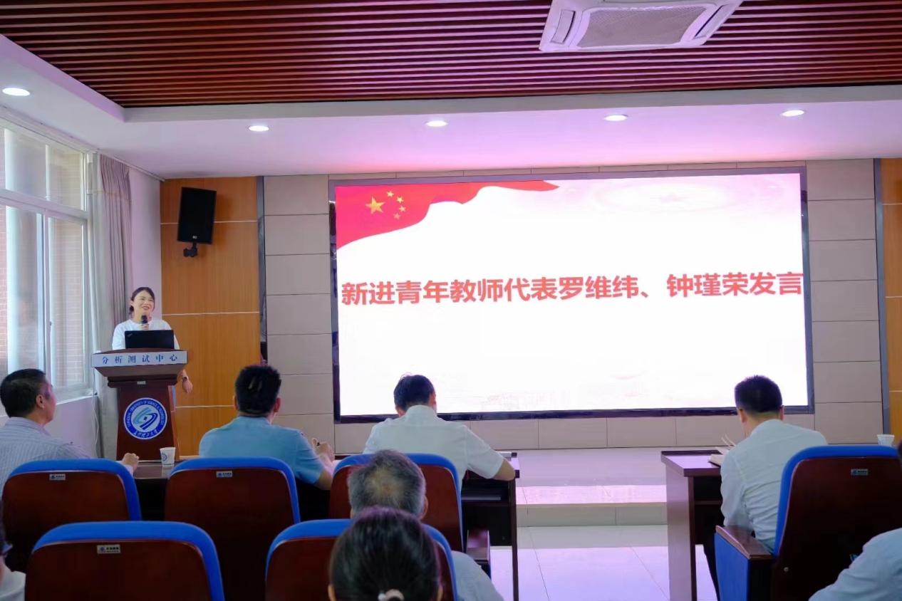 随后,学院领导给新进青年教师佩戴校徽并赠送礼物,当青年教师戴上校徽的那一刻起,青年教师们不仅收获了满满的幸福,更感受到了肩上的责任。新进青年教师代表罗维纬、钟瑾荣上台发言,他们对入职以来学院全方位的关心和支持表达了衷心的感谢,对未来的科研教学工作进行了展望。最后,新进教师在学院党委书记宋刘斌的带领下,齐声朗读誓词,立志做一名光荣的人民教师,忠于党的教育事业,履行教师的神圣职责,为人师表、追求真理、崇尚科学、依法执教、教书育人、勤勉敬业、严谨治学、团结协作、勇于创新,做有理想信念,有道德情操,有扎实学识,有仁爱之心,让党放心、人民满意的好老师,为中华民族的伟大复兴、为人类社会的文明进步、为人民教育事业奉献一切!