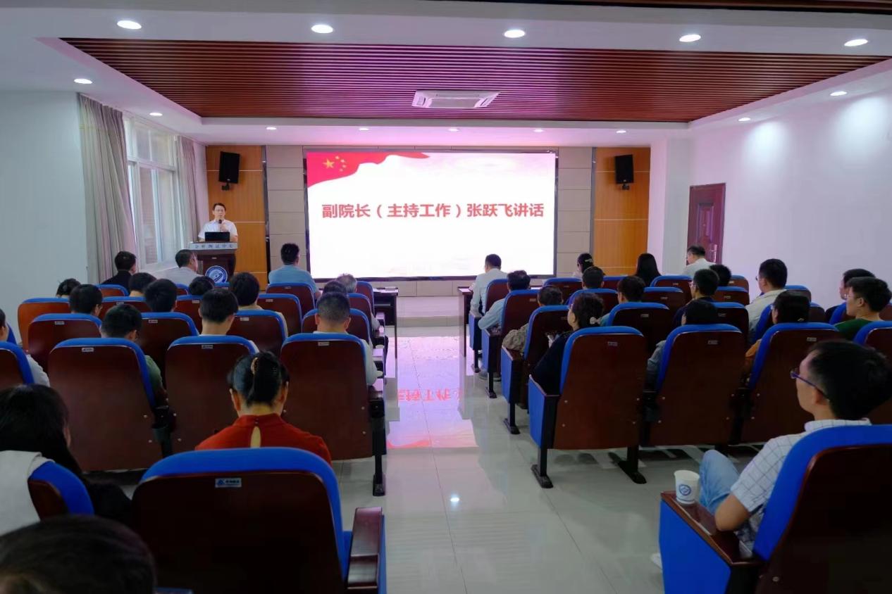 首先,副院长(主持工作)张跃飞代表学院向所有新入职的青年教师们表达了热烈的祝贺,提出了殷切的希望与鼓励。他表示,新进青年教师的到来为学院注入了新的活力,青年教师的成长对学院学科建设、人才培养等工作都具有重要意义,希望青年教师们既要满怀自信,又要虚心求教;要树立远大梦想,踏实工作、开拓创新,坚持用“六多六少”严格要求自己,勉励青年教师为学院的学科和专业发展贡献力量。