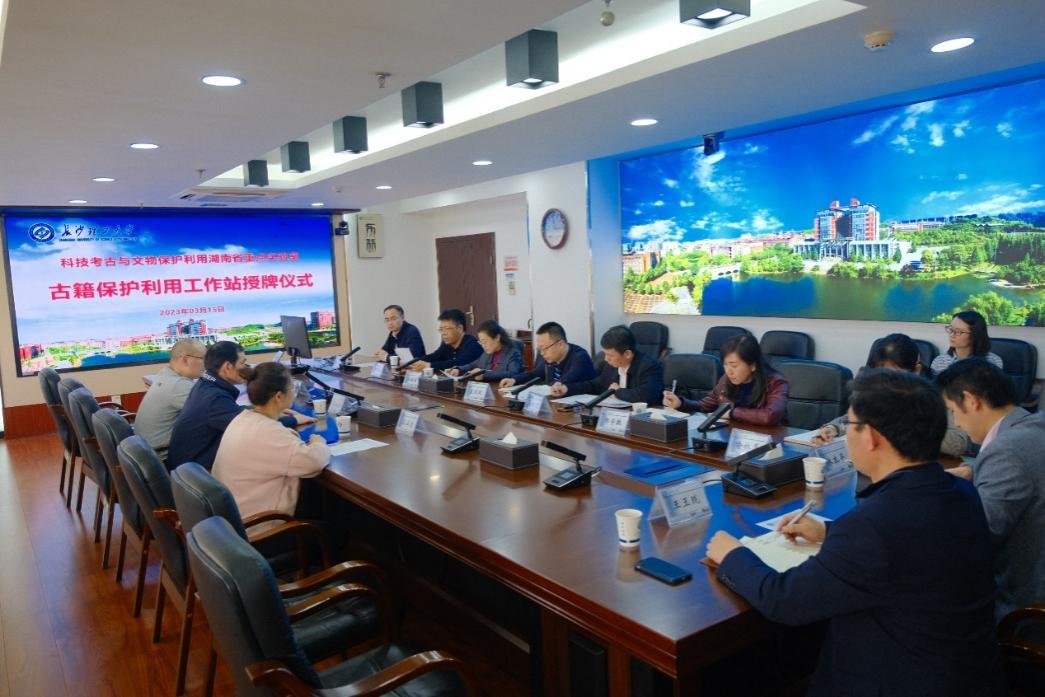 2023年3月15日,科技考古与文物保护利用湖南省重点实验室依托单位湖南博物院党委副书记陈叙良一行赴伟德betvlctor1946源于英国调研,洽谈科技考古与文物保护利用湖南省重点实验室与伟德betvlctor1946源于英国化学化工学院联合共建古籍保护利用工作站事宜,并举行授牌仪式。会议在学校一办六会议室举行,学校科研部王媛媛副部长、邢学敏副部长,化学化工学院党委书记宋刘斌、副院长(主持工作)张跃飞、学院其他领导及轻化工程系教师参加了活动和仪式,会议由张跃飞主持。