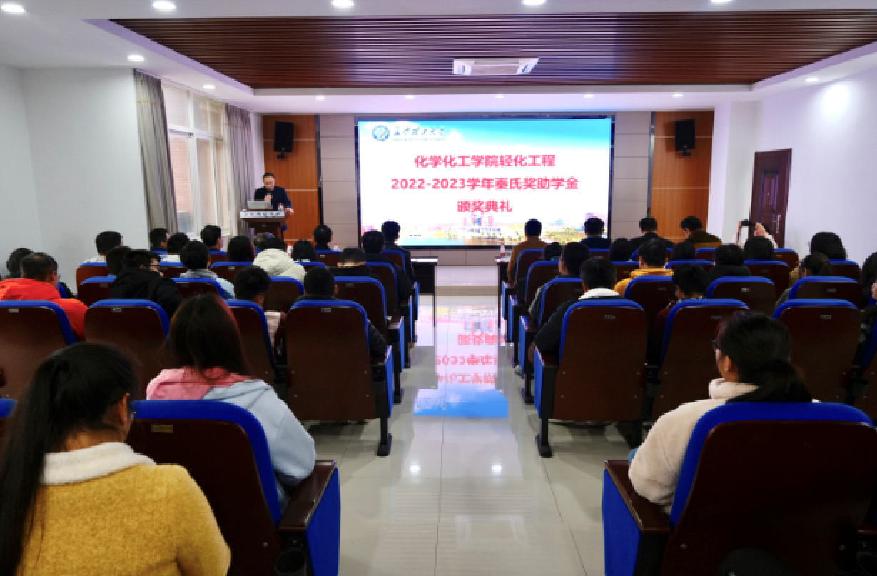 2023年3月21日,在新能源大楼3B栋301报告厅举行化学化工学院轻化工程2022-2023学年秦氏奖助学金颁奖仪式。杰出校友广东金天擎化工科技有限公司董事长秦保国先生,化学化工学院党委书记宋刘斌、副院长(主持工作)张跃飞、学院党委副书记任艮丰、学院分析测试中心副主任黄永华、轻化工程系老师、学工办老师和同学们参加了颁奖仪式,仪式由学院副院长陈启杰主持。