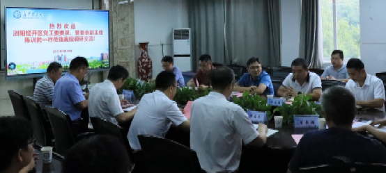 张跃飞副院长(主持工作)对浏阳经开区来校调研表示热烈欢迎并就学院的发展历史、办学条件、科研团队等基本情况以及学院近几年在专业建设、招生就业、社会服务、国际交流等方面取得的成绩进行了详细的介绍。张院长指出,学院高度重视产学研合作及科研成果转化,支持、鼓励学院相关团队与企业对接实现先进科研成果的转化应用,将多方位多举措推动浏阳经开区与化学化工学院持续展开深入合作。