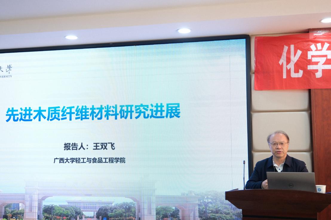 2023年1月11日下午,本科专业前沿系列名师专题、研究生博力学术论坛之大师引领系列讲座在云塘校区工科三号楼A320举行。伟德轻化工程专业杰出校友中国工程院院士、广西大学王双飞教授应邀来伟德作了主题为“先进木质纤维材料研究进展”的学术报告。副校长胡永乐主持报告会,对王院士来伟德指导表示衷心感谢。学校领导、化学化工学院等约150名师生参加了此次报告会。