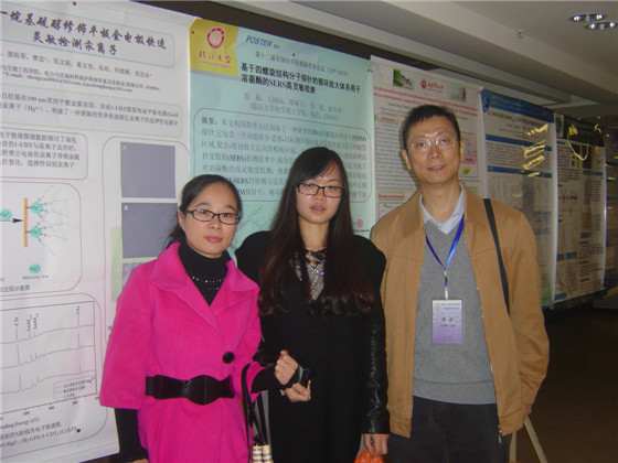 伟德化学与生物工程学院教师曹忠教授、谭淑珍教授、何婧琳博士及研究生吴玲、陈丹等参加了此次盛会。其中,曹忠教授作为中国仪器仪表学会分析仪器分会化学传感器专业委员会委员,是此次大会的学术委员会成员之一;曹忠教授应邀作报告《一些分子离子选择性传感探针的设计、性能及应用》,何婧琳博士应邀作报告《基于工具酶等温扩增反应的核酸检测方法研究》,研究生陈丹作了题为《氧化石墨烯/二氧化钛-离子液体复合膜修饰电极对多巴胺的灵敏检测》的口头报告;研究小组还展出了6个墙报,其中《以DNA为模板的银纳米簇荧光法用于Hg2+的定量检测》获得大会“优秀报展三等奖”,同时与会上的专家、学者进行了很好的交流,获得大家好评。