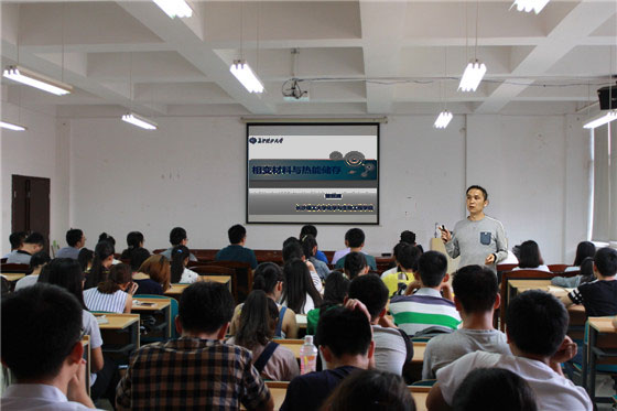 414日下午,我院化学系副教授曾巨澜博士在工三A320为学院本科生做了题为“相变材料与热能储存”的学术报告。曾老师从化石能源的过度使用导致的环境问题和热能利用在人们生产生活中所处的重要地位着手,阐明了热能存储在开发新能源,提高能源利用效率和解决相关环境问题等领域的重要意义。接着他结合自己在相变材料研究领域多年的研究经历,向同学们就相变材料的工作原理,材料来源,存在问题,应用前景,发展方向以及与我院各专业的关系作了详尽的介绍。曾老师的报告深入浅出,内容详实,并与同学熟悉的各种生产生活活动紧密结合,报告中曾老师语言时而细致严谨,时而风趣幽默,深受同学们的欢迎。