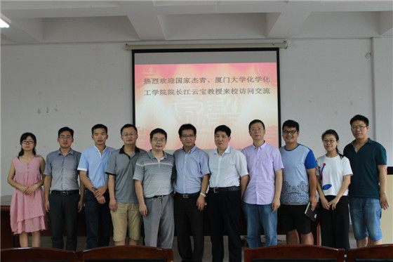 2016年6月23日,应伟德betvlctor1946源于英国化学与生物工程学院的邀请,国家杰出青年基金获得者、厦门大学化学化工学院院长、博士生导师江云宝教授来伟德进行学术交流访问。学术交流活动由化学与生物工程学院院长杨荣华教授主持,副院长曹忠教授,肖忠良教授,以及化学、化工等相关学科的青年骨干教师、研究生、本科生100余人参加了此次学术交流活动。