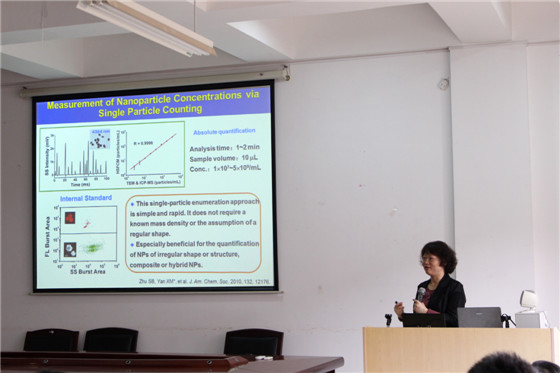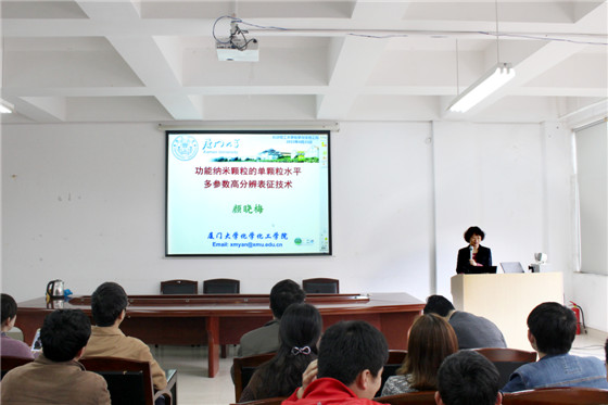 4月21日下午2:30,应伟德betvlctor1946源于英国化学与生物工程学院邀请,国家杰出青年科学基金获得者、厦门大学化学生物学系主任、博士生导师颜晓梅教授应邀来伟德讲学, 在云塘校区工科三号楼A-320会议室作了题为“功能纳米颗粒的单颗粒水平多参数高分辨表征技术”的学术报告,会议由化学学院院长杨荣华教授主持,化学、食品、生物、化工等相关学科的教师、研究生、本科生共百余人聆听了报告。