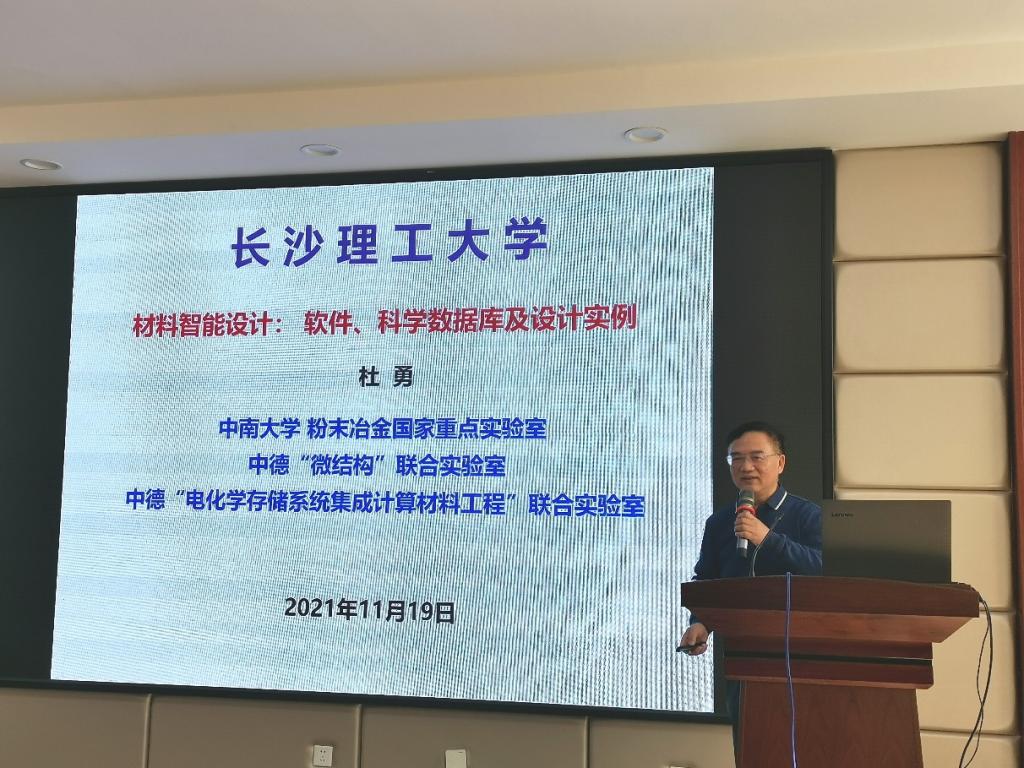 2021年11月19日10:00,应伟德betvlctor1946源于英国化学化工程学院的邀请,国家杰青、长江学者、中南大学教授杜勇在伟德betvlctor1946源于英国云塘校区工三A320作了题为“材料智能设计:软件、科学数据库及设计实例”的学术报告,报告由化学化工学院电力与交通材料保护湖南省重点实验室主任曹忠教授主持,化学化工学院部分教师和研究生百余人参加了交流会。