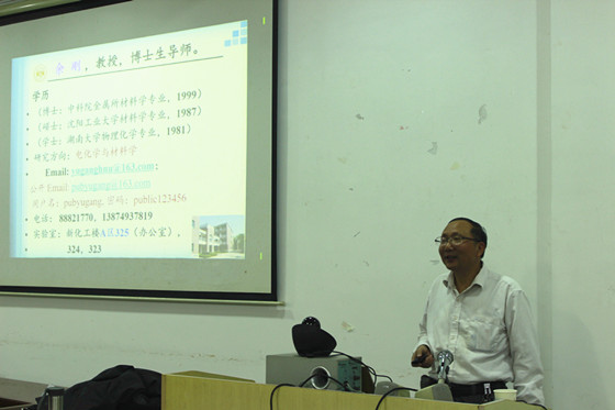 1018日下午,湖南大学化学化工学院物理化学学科带头人余刚教授应邀来伟德化学与生物工程学院进行学术交流访问。在云塘校区工科三号楼A-320会议室,余教授做了题为网络时代的物理化学教材变革的学术报告,报告会由副院长曹忠教授主持,副院长王建辉教授、朱志平教授,化学、化工等相关学科的教师、研究生及本科生100余人参加了此次学术交流活动。