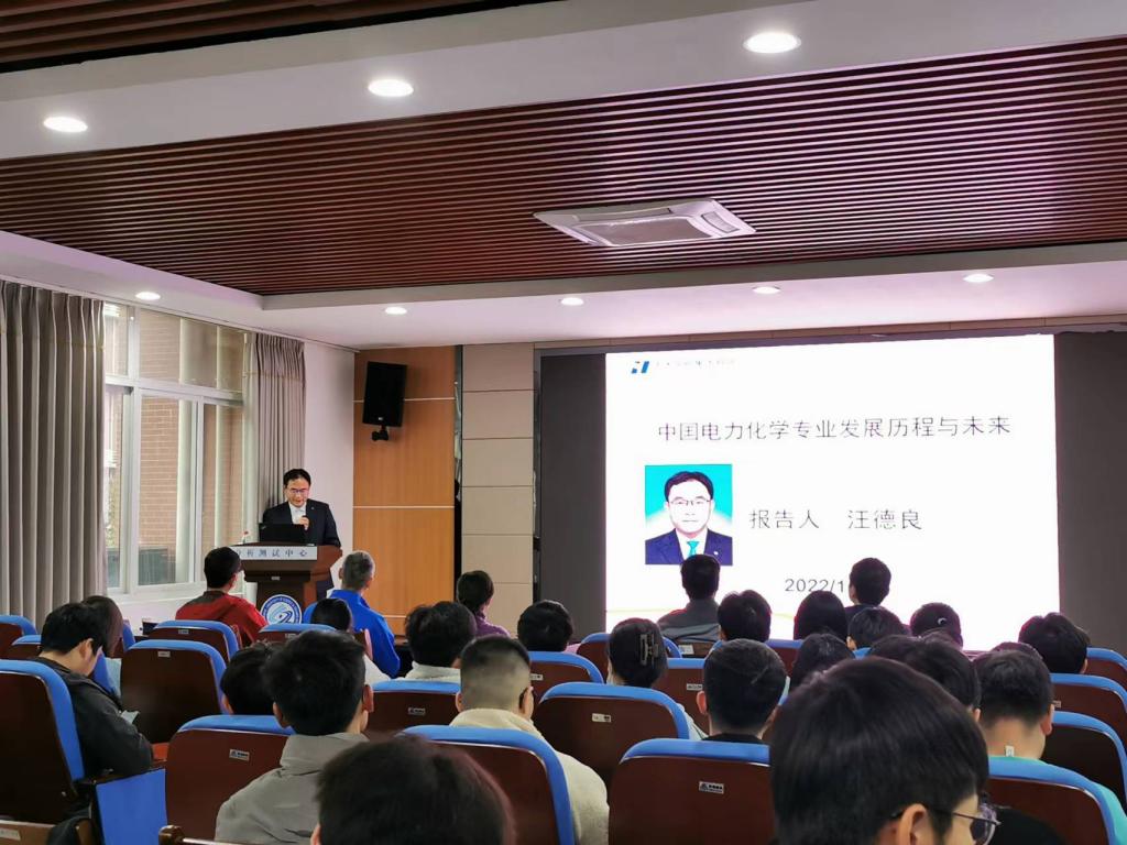 当天下午16:20,在云塘校区新能源大楼分析测试中心报告厅3B301,汪德良研究员了 “中国电力化学专业发展历程与未来”专题讲座,化学化工学院部分教师及研究生、材料学院材料与化工研究生共计90余名师生参加。汪总从四个方面介绍了中国电力电力化学的发展历程、现状及未来。历时2个多小时的讲座内容丰富,层层递进,在现场师生的热烈掌声中完美结束,在场师生深受启发,增强了积极参与电力行业发展相关研究课题的信心