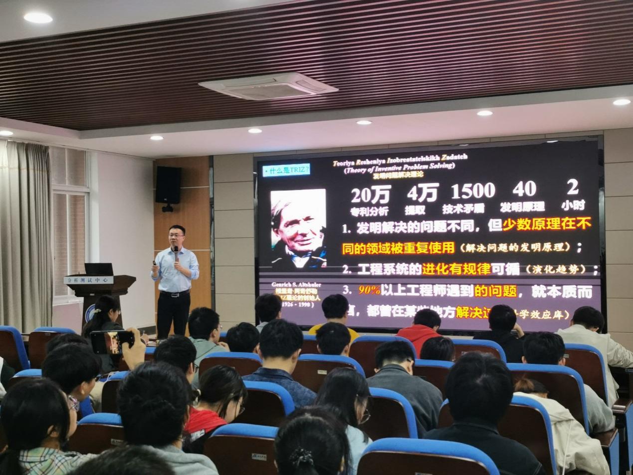 杨博士从产品创新4步法(OBQA思维模型)、创新实践案例-申请5件专利、40个发明原理等介绍了发明问题解决理论(TRIZ)与ChatGPT(人工智能技术驱动的自然语言处理工具)。与经典的理论不同,TRIZ理论则遵循分析问题→解决问题→概念实施三步走,它帮助解决突破技术瓶颈、有效的专利规避、未来技术预测、降低成本增加效益、提高创新能力等一系列问题。运用TRIZ理论可以将复杂的技术创新问题分解成一系列简单的技术矛盾,再经特定的方法寻求问题解决方案,过程中可运用ChatGPT助力完成,以提高工作效率。此次讲座对正在接触科研的新生们来说,不仅拓宽了眼界,摆脱了思维局限,对他们的科研之路以及今后的就业与生活,都有很强的指导作用。