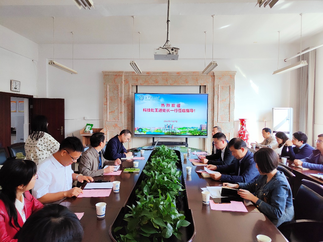 2023年11月8日下午,学校科技处处长王进,副处长姚宇,项目管理科副科长黄乔莅临化学化工学院开展调研与科研指导工作。会议在学院B-318会议室进行,由院长张跃飞主持,副院长卿志和、陈启杰、喻林萍及学院科研骨干教师40余人参加了本次调研与科研指导会议。