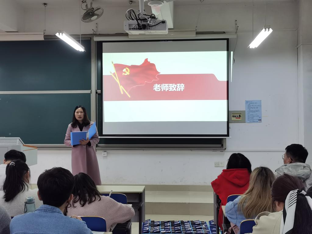 4月13日中午,化学学院分党校第37期入党积极分子培训班开班典礼暨第一次视频课于工科一号楼B203举行。本次会议由化学学院入党积极分子培训班副班主任崔英杰同志主持,化学学院党建辅导员刘文成老师、培训班全体积极分子参加。