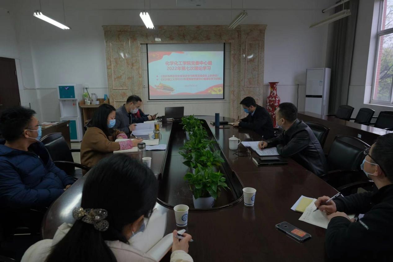 化学学院理论学习中心组4月份集中学习了3次,内容涉及《张庆伟同志在中南大学宣讲的党的十九届三中全会精神的报告》、学校4月25日党政工作例会精神、《伟德betvlctor1946源于英国2022年度两级党委中心组理论学习安排》、《学习开展2022年全民国家安全教育日宣讲教育活动的通知》、《关于进一步做好疫情防控工作的通知》、学校关于思想政治工作有关条例等通知和会议精神。
