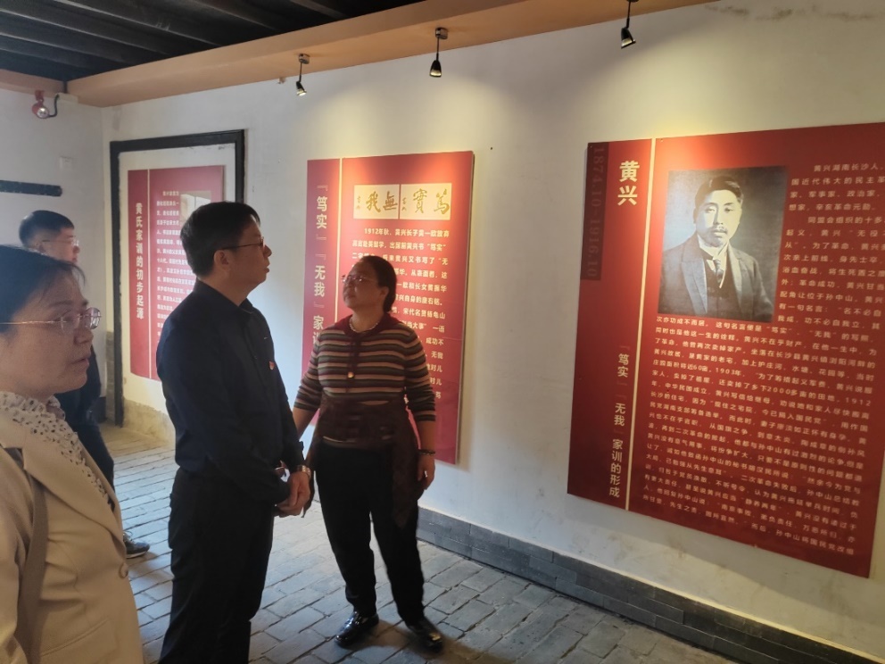 活动首站是黄兴故居。全体党员共同参观了故居的磨坊、寝室、客厅和书房,了解了黄兴的家庭背景和成长环境。走进黄兴故居,穿行于走廊、厢房、天井之间,看到了许多藏品和“华兴会”开会使用过的家具原物及用品,回顾了辛亥革命的艰难曲折与坎坷跌宕,在场老师们受到了鼓舞和极大震撼。