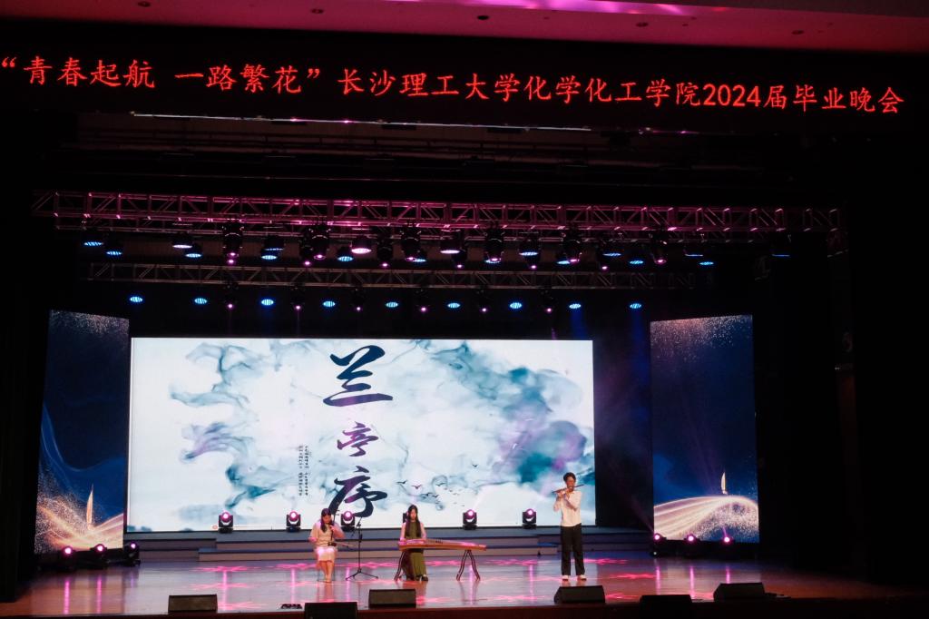 晚会在学校大会堂隆重举行,现场灯光璀璨,气氛热烈。来自全院师生的数百名观众齐聚一堂,共同见证这一难忘时刻。本次毕业晚会以“青春启航 一路繁花”为主题,通过丰富多彩的节目展示,回顾了毕业生们在校园度过的美好时光,展现了他们朝气蓬勃的青春风采。文艺节目精彩纷呈,有歌曲串烧、舞蹈表演、情景剧等多种形式,无一不展现了化学化工学院学子的风采与才华,赢得了观众阵阵喝彩和掌声。