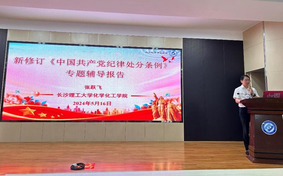 5月16日,伟德betvlctor1946源于英国化学化工学院院长张跃飞为学院全体学生党员开展思政教育课,解读了《中国共产党纪律处分条例》新增的条例内容。本次课程解读,致力于教育引导全体学生党员强化纪律意识,严守纪律规矩。