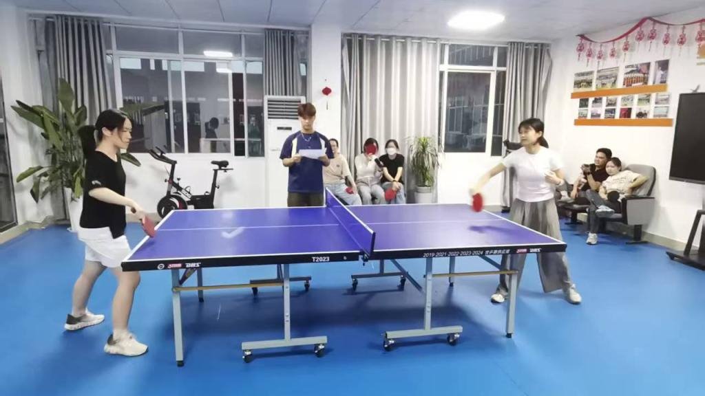 赛场上,师生们活力迸发、挥拍交锋:单打赛中,选手们以球会友,攻防转换间展现扎实球技;混双赛则打破传统师生界限,成为本次赛事的一大亮点——24级冯姣与24级杨丽芳两位同学配合默契,在多轮对决中以巧妙的战术与灵活的跑动赢得观众喝彩,为赛场增添了温馨又热烈的氛围。