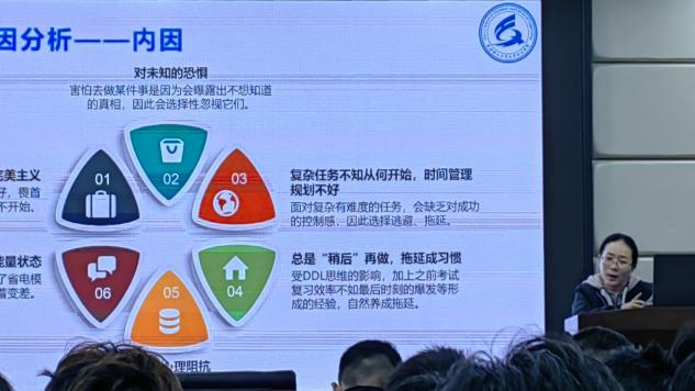 2023年4月6日,化学化工学院2022级第一期朋辈培训课于工三A320展开。本次课程由心理辅导员江洁主讲,22级各班班长、心理委员、寝室长、心理部和幸福舍成员等参与学习。