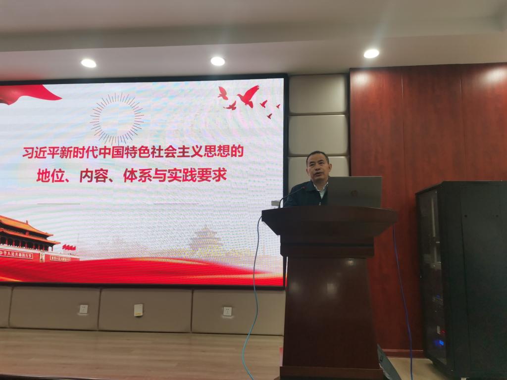 首先,余乃忠指出学习习近平新时代中国特色社会主义思想,要明了其历史地位,要掌握其主要内容,要认识其科学体系,要领会其实践要求。随后,余乃忠为全体学员梳理了党的指导思想发展历程,又以疫情期间党和国家的制度优势为例,生动地讲解了习近平新时代中国特色社会主义思想的主要内容、科学体系和实践要求,突出习近平新时代中国特色社会主义思想结合中国实际为马克思主义做出了原创性贡献。最后,余教授勉励全体学员要坚持以习近平新时代中国特色社会主义思想为指导,不忘初心,牢记使命,为实现中华民族伟大复兴的中国梦不懈奋斗!