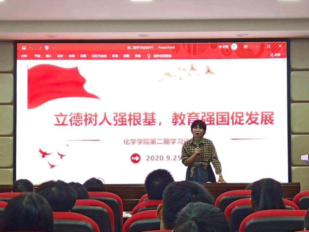 9月25日晚,化学学院学生党总支在工三A320举办第二期学习论坛,本期主题为“立德树人强根基,教育强国促发展”。论坛由应化支部宋芯主持,部分党员和积极分子代表参加。