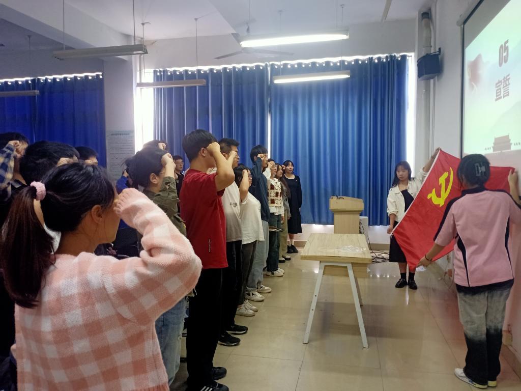 首先,全体起立奏唱国歌,培训负责人(姜佳武)宣读培训方案,强调班级纪律和要求。然后,学员代表晏钰淞同志发言,提出我们要坚定理想信念,练就过硬本领,勇于创新创造,矢志艰苦奋斗,养成正确价值观,积极投身实践与社会紧密联系起来,在实践中发现和检验真理。之后,陈楠老师致词,她将党的目标与党校学习制度相结合,希望大家认真学习,深入了解党的历史和初心;希望大家遵守纪律,提高自身思想素质。最后,全体起立面向党旗进行入党宣誓。