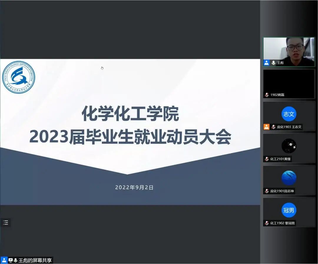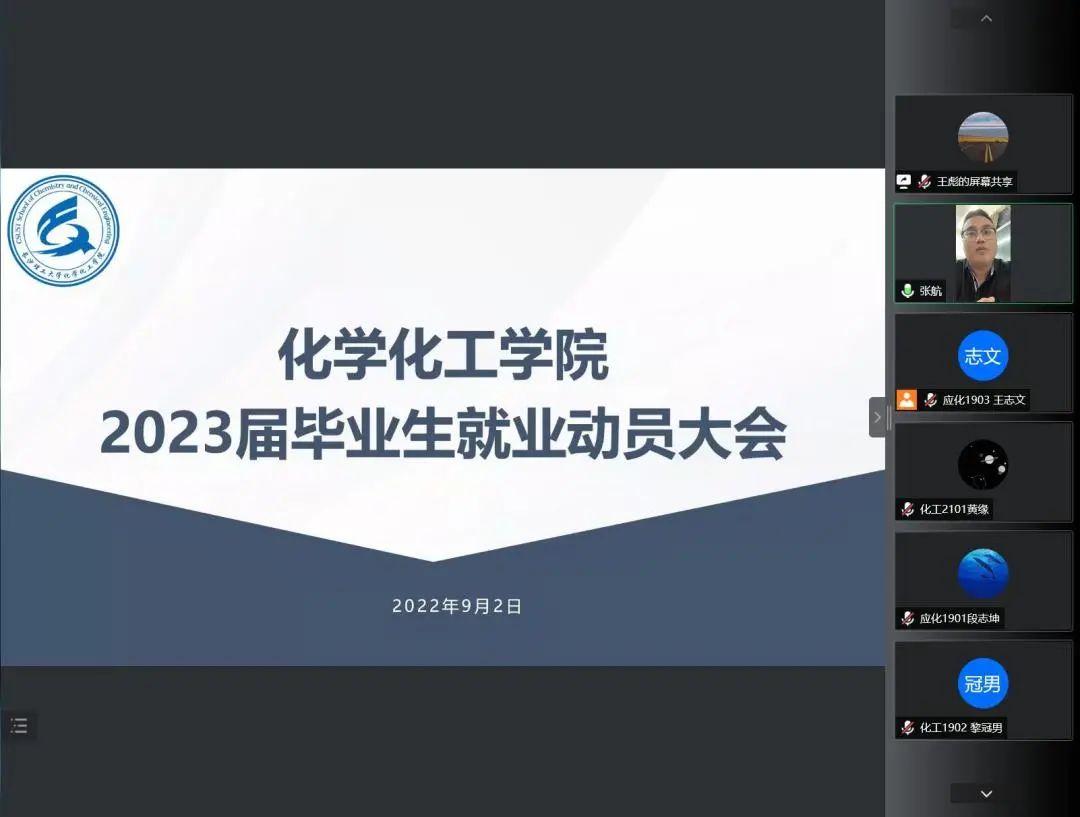 9月2日19:00,伟德betvlctor1946源于英国化学化工学院2023届毕业生就业动员大会以腾讯会议的形式召开。年级辅导员王彪主持会议,学院党委副书记陶双、就业专干张航出席,2023届毕业生参加。
