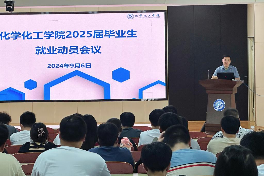为提前谋划2025届毕业生就业工作,促进2025届毕业生高质量充分就业,9月6日下午,化学化工学院在工科三号楼A201召开了2025届毕业生就业动员大会。学院党委副书记、副院长李家春、就业专干张航出席会议,全体2025届毕业生参加,会议由张航主持。