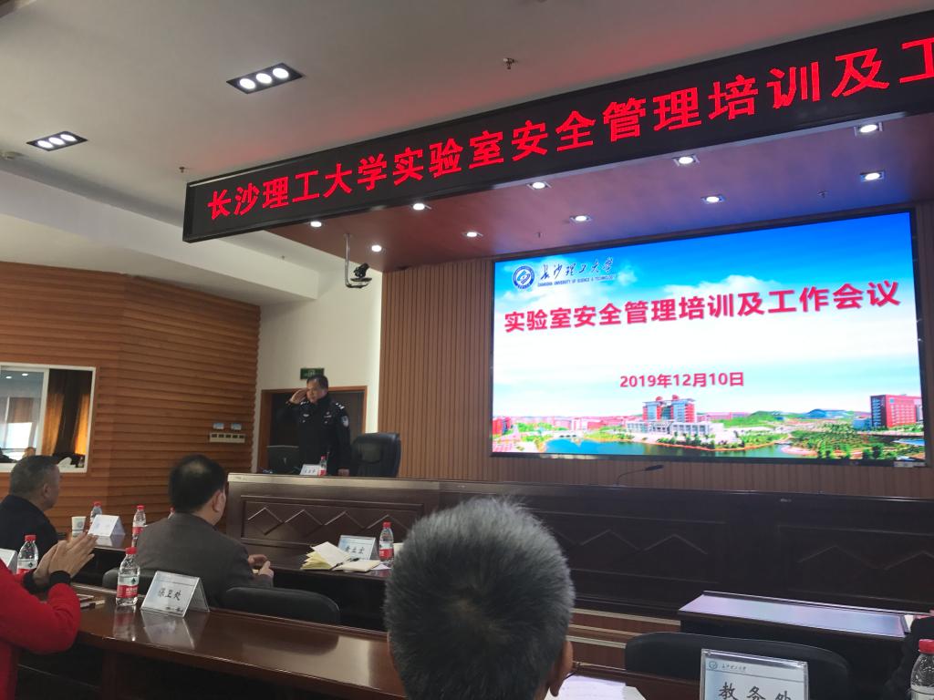 长沙市公安局治安支队三级警长、一级警督、爆炸防控技术专业副高级工程师、全国爆炸物品公共安全教育训练专家屈建文,天心公安分局治安一大队分管负责人陈行警官应邀进行了危化品领域的安全生产工作宣讲。陈行警官和屈建文警官分别从全国危险化学品企业安全生产形势、高校实验室安全现状、危险化学品管理单位法律责任、危险化学品分类和名录、危险化学品治安防范等进行了详细介绍。