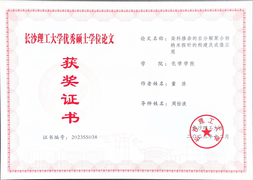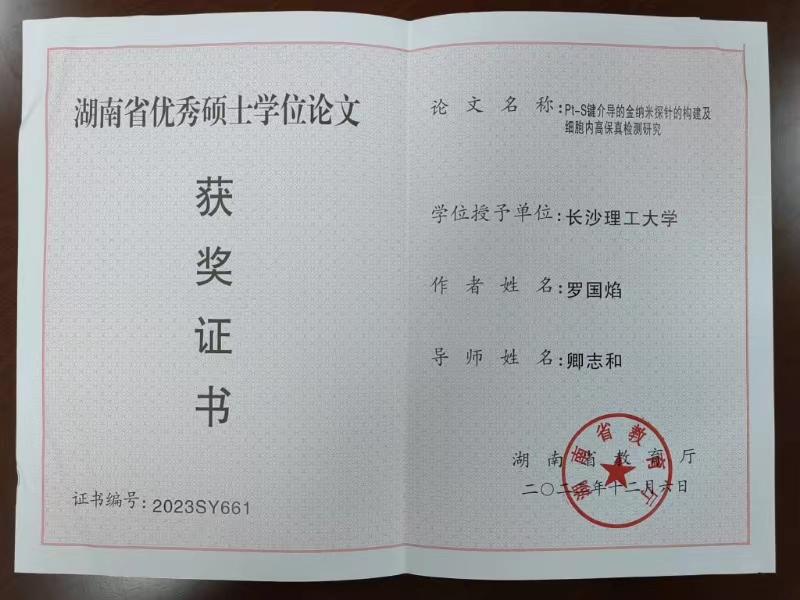 获奖等级:2023年度湖南省“优秀研究生导师”