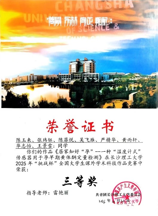 获奖等级:2025年全国大学生“挑战杯”校级三等奖