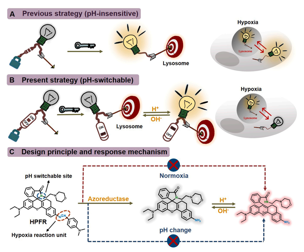 [57] Huihong Liu, Xianqing Zeng, Honghui Yin, Jing Chen, Wenzhi Xie, Guoqiang Zhou, Guojiang Mao, Yibo Zhou,* Sheng Yang.* A pH-switchable azo-based fluorescence reporter for lysosome-confined visualization of hypoxia status. Sensors & Actuators: B. Chemical., 2023, 381, 133431.