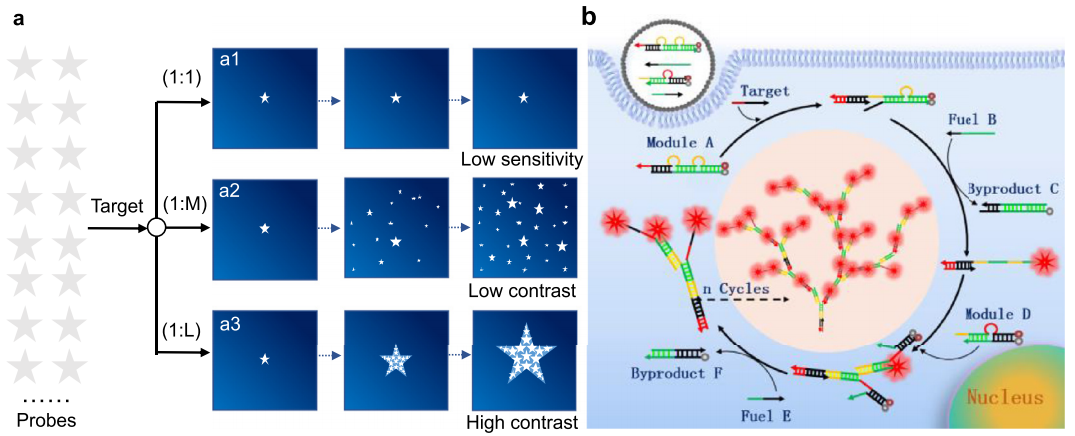 [17] Ke Quan, Jing Li, Jiaoli Wang, Nuli Xie, Qiaomei Wei, Jinlu Tang, Xiaohai Yang, Kemin Wang and Jin Huang.* Dual-microRNA-controlled double-amplified cascaded logic DNA circuits for accurate discrimination of cell subtypes. Chemical Science, 2019, 10, 1442-1449.