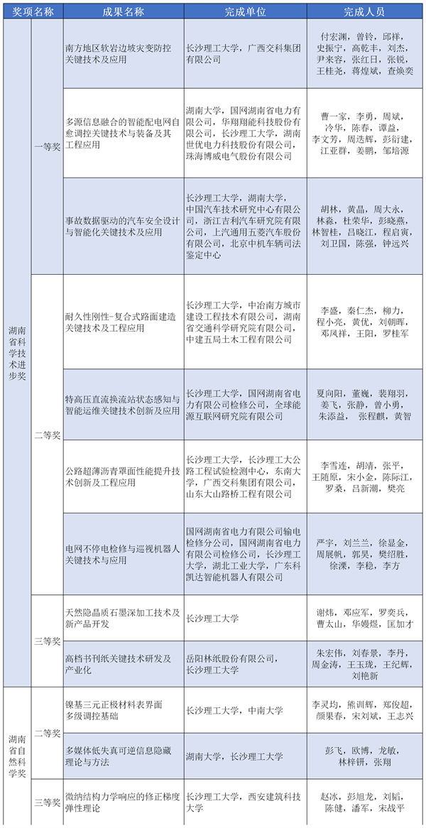 2月24日,湖南省科技创新奖励大会在长沙召开。省委副书记、省长毛伟明出席大会并为获奖代表颁奖。会议表彰了2021年度湖南省科学技术奖,共有授奖项目(团队、人选)293项,其中杰出贡献奖1项、自然科学奖95项、技术发明奖25项、科技进步奖166项、创新团队奖5项、国际合作奖1项。