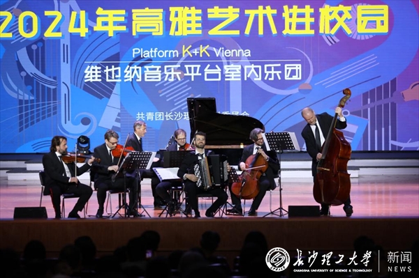 4月23日,维也纳音乐平台室内乐团(Platform K+K Vienna)专场音乐会在伟德云塘校区大会堂举行,来自“音乐之都”维也纳的演奏家用优美动听的旋律为师生带来了一场浪漫独特的音乐体验。校党委书记付宏渊与学校一千六百余名师生共同欣赏此次音乐会。