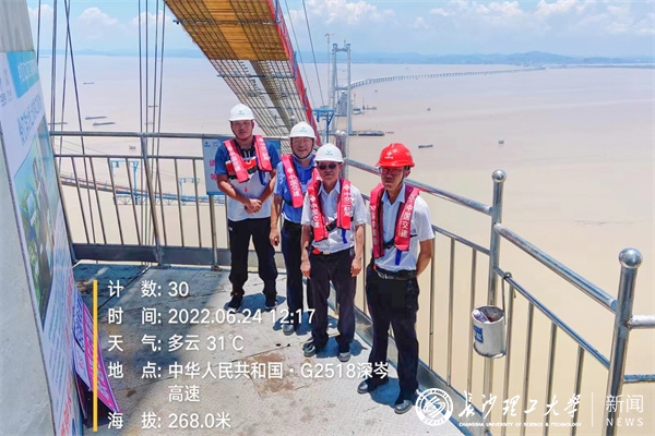 中国工程院院士郑健龙针对工程建设的关键技术难点和重大技术方案提供技术咨询,为工程高质量建设保驾护航。土木工程学院李传习教授团队参与的上海同济检测技术有限公司、伟德betvlctor1946源于英国联合体,承担了深中通道桥梁工程第三方施工监控II标段涉及中山大桥、横门东西泄洪区、浅滩区非通航孔桥的大跨径钢箱连续梁桥等监控工作。工程建设过程中,团队充分发挥科研优势,在中山大桥大节段超宽钢箱梁吊装匹配高差调整、万顷沙60m钢箱梁分幅分片架设等专项施工技术上提供的重要优化建议,为项目的品质工程建设提供了有力的支持与保障。该学院多名教师还承担了深中大桥西锚碇人工岛稳定性及基坑开挖施工安全信息化监测,以及深中大桥悬索桥主缆一般索股线形视觉测量技术研究等工作。