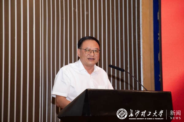 周韶峰代表湖南省教育厅“校友回湘”工作专班学校校友为湖南省地方经济发展所作出的突出贡献,寄望学校加快“双一流”建设,继续发挥理工科办学特色,在学科建设、人才培养、科技创新等方面取得更高成就。
