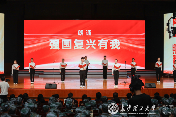 随后,专题党课在慷慨激昂的《国际歌》中拉开序幕。党课分为“旗的指引”“梦的感召”“路的拓展”“力的源泉”和“美的交响”五个篇章,融合了理论宣讲、视频展播、诗朗诵、特色舞蹈编排等多样形式。以郑健龙院士及其团队为代表的长理科研工作者不畏艰难科研攻关、矢志奉献“交通强国”的故事,将崇高师德践行到生命最后一刻的周骞老师勇抗病魔、潜心教书育人的故事,新时代长理有志青年意气风发、在青春的赛道上奋力奔跑的故事等引发了在场师生的共鸣,让人眼含热泪、心潮澎湃。