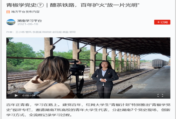 以创新文化引领云岭传媒工作坊课程建设。云岭传媒工作坊作为新闻学专业的必修课程,将知识-能力-价值的“三位一体”育人目标贯穿课程教学,以价值引领确保课程底色,以“知识自学习、能力自培育”目标明晰学生“自主学习者”角色的成长路径。遵循“反向设计”原则,采用项目驱动教学法,由教师确定项目主题,学生根据兴趣及能力分组合作完成任务;与新闻机构或新媒体公司合作,导入行业真实项目,指导学生按照实际业务流程“做中学”;或是学生自主设计项目,撰写策划书,通过答辩后予以立项,如学生自定选题进行纪录片创作等。云岭传媒工作坊课程,契合媒体融合国家战略的大型综合性、设计型、创意型实验项目的设计与实施,涵盖新闻产品、综艺节目、专业宣传片、毕业生风采短片、纪录片、新媒体视频新闻与时评作品、新媒体矩阵运营等内容生产、传播、运营的融媒产品产销流程。五年来,学生在省级以上媒体累计发表新闻作品514篇,在新湖南“青年说”专栏和红网“青椒视评”推出“雷锋从未走远,雷锋就在身边”“英雄模范永远是国家最闪亮的坐标”等主题作品129篇,累计浏览量超过1200万次。