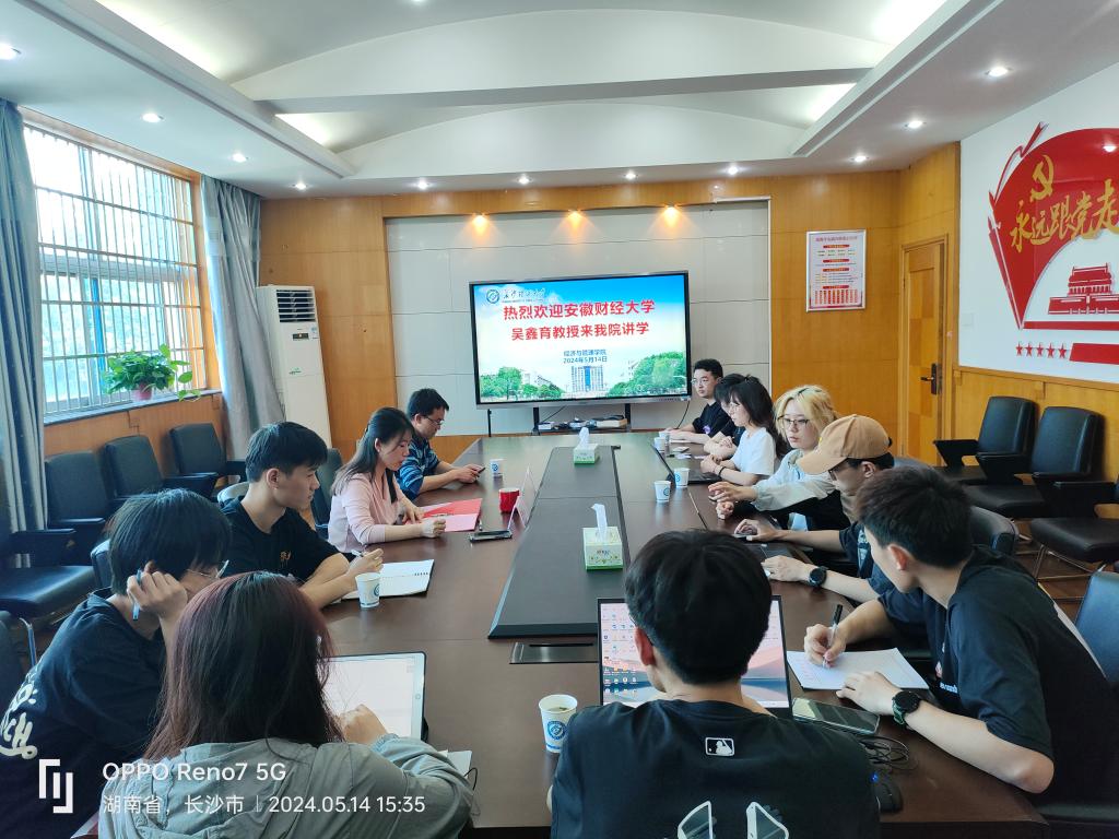 2024年5月15日,安徽财经大学金融学院副院长吴鑫育教授作为2024年金岭学术大讲堂第5期的嘉宾,在伟德betvlctor1946源于英国金盆岭校区经管大楼307,为我院师生带来了一场主题为“期权隐含风险厌恶与中国股市波动率预测”的学术讲座。讲座由经管学院副院长刘坚主持,30余名师生参加了本次讲座。