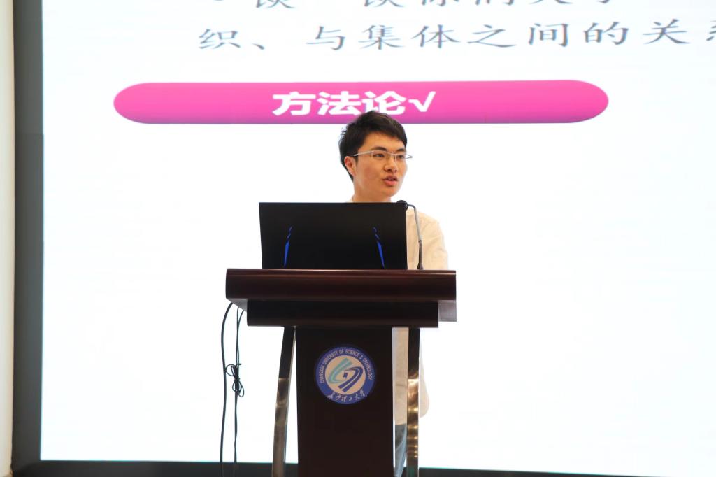 胡景谱用自己的例子引出“个人利益与组织、集体之间的关系”。他从唯物辩证法出发,谈论了如何理解人的自我价值与社会价值的统一,强调每名党员都应坚持集体利益高于个人利益。随后,彭琼英从“新时代大学生如何创造条件早日加入中国共产党”展开讲述,她提出首先要端正入党动机,积极投身实践,在学习和生活中以党员的标准严格要求自己,自觉接受组织的培养、教育和考察,自觉接受教育批评,弥补不足并加以改进。