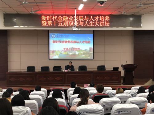 接着,兰铁军以“新时代金融业发展与人才培养”为题进行讲座从现代金融现状和未来发展趋势两个方面谈起,介绍了现代金融的范畴及其各自的特点和区别。他指出,我国现在正处于改革开放往深水区发展的阶段,打好三大攻坚战最重要的是要先打好金融攻坚战,而究竟该怎样打好攻坚战,其中问题又在哪里?这值得每一个学金融的学生去分析和思考。谈到大家最关注的就业问题,兰铁军也结合现代金融分享了一些经验。他说,在招聘中一定要做好充足的准备,包括提前掌握校招时间,针对招聘岗位相关需求进行准备,提高自己的各方面能力等。而后,兰铁军主要从自我培养和工作培养两个方面来谈人生培养问题。其中包括进行自我学习,时刻牢记自己优秀的意愿,多在社会中历练以及进行自我总结和深造,保持良好积极的心态等。说起学习,他告诉大家一定要抓住现在大学学习的机会,善于规划和安排好四年的时间,学金融而不能只局限于金融,要以金融为主去学习社会各方面的知识。同时,他还向大家推荐了一些书籍,鼓励大家多思考,多学习。